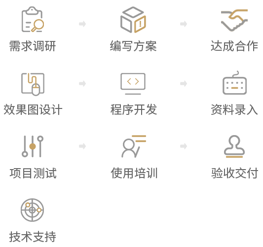 用戶端設計與開發(fā)、管理端設計與開發(fā)、數(shù)據(jù)接口接入、域名服務、服務器購買與部署、ICP備案、程序技術服務、安全維護、內容維護、使用培訓服務。